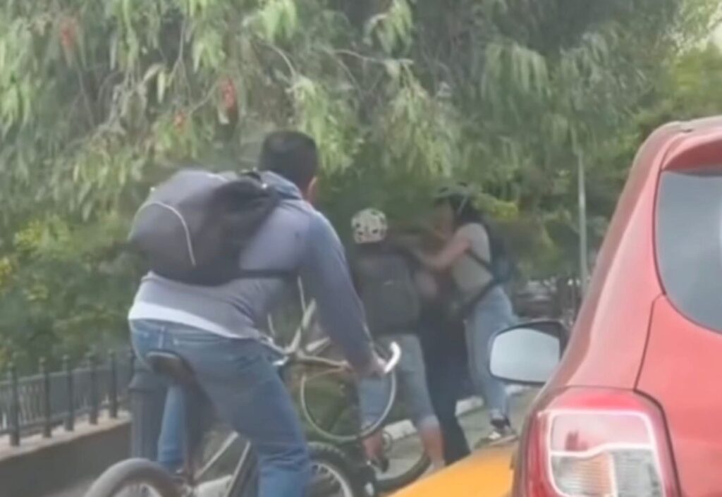 Una riña entre al menos cuatro ciclistas fue captada en video este jueves sobre Avenida Universidad, en el corazón del Centro Histórico de Querétaro, presuntamente originada por la invasión de la ciclopista y la obstrucción del libre paso. De acuerdo con testigos, el altercado ocurrió cuando una pareja de ciclistas se detuvo sobre la vía […]