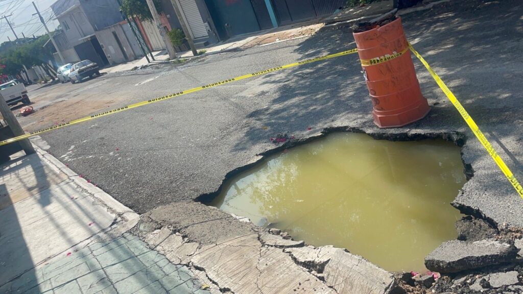 Vecinos denuncian socavón con aguas negras en la colonia Movimiento Obrero.