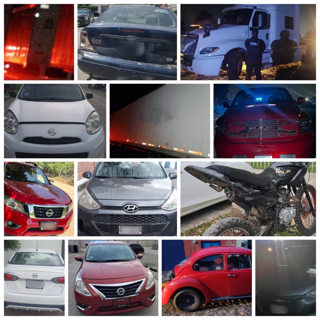 Policía Estatal recupera 13 vehículos robados en distintas zonas del estado.