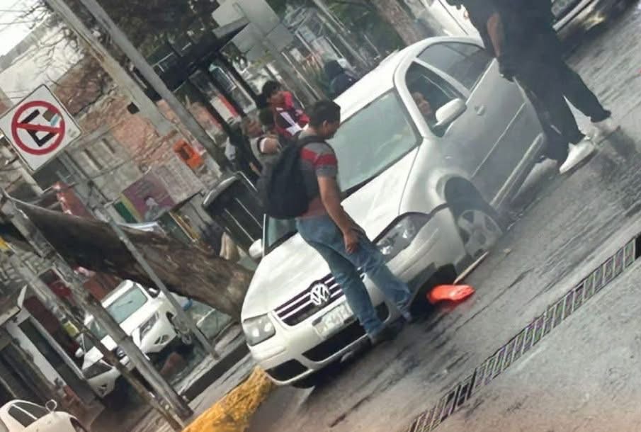 Vehículo cae en coladera sin tapa y provoca caos vial en Avenida Revolución