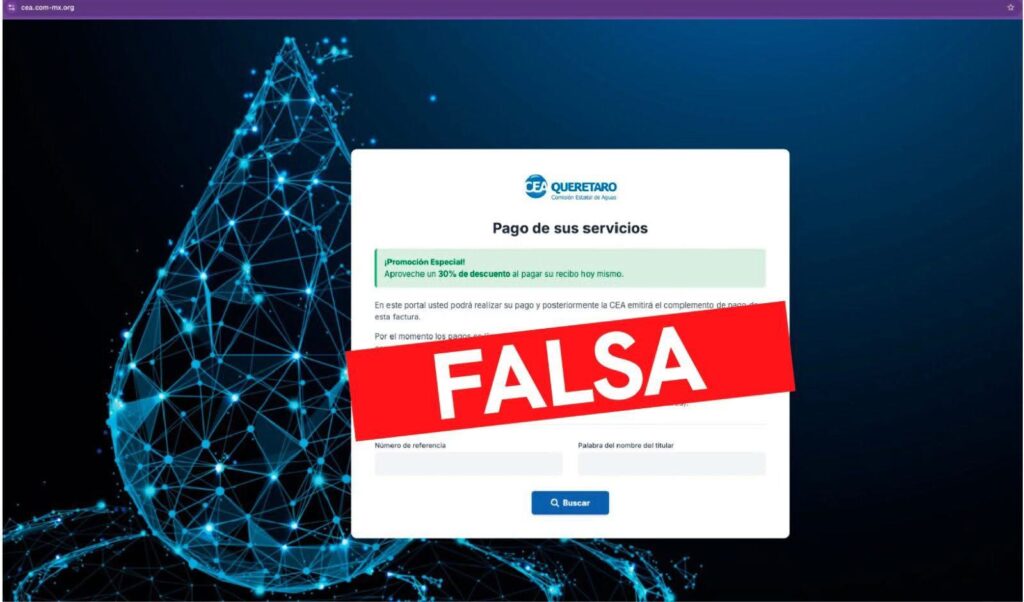 La Comisión Estatal de Aguas (CEA) alertó a la ciudadanía sobre la detección de una página apócrifa que suplanta la identidad de la institución, ofreciendo falsos descuentos del 30 por ciento en el pago del servicio y solicitando pagos en línea para supuestos trámites oficiales. De acuerdo con la dependencia, el sitio fraudulento opera bajo […]