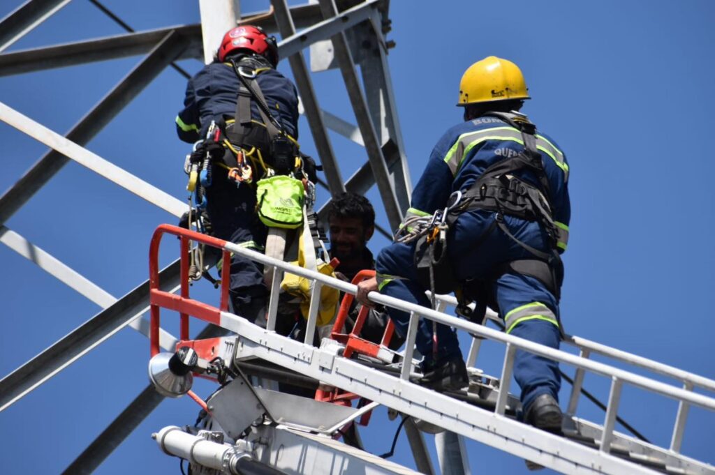 Hombre en situación de calle trepó torre de alta tensión en Pirineos; rescatistas lograron bajarlo y ponerlo a salvo