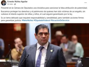 Una polémica iniciativa presentada en la Cámara de Diputados ha generado debate a nivel nacional. El diputado federal por Michoacán, Ernesto Núñez Aguilar, del Partido Verde Ecologista de México (PVEM), propuso castigar con cárcel a las mujeres que atribuyan falsamente la paternidad de un menor a un hombre que no es su progenitor.
