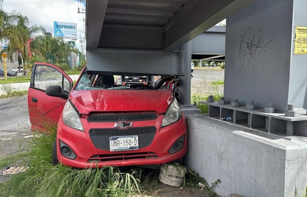 El accidente ocurrió por la mañana, cuando un automóvil Chevrolet Spark, color rojo y con placas de Querétaro, circulaba sobre la lateral con dirección a la Ciudad de México. Al llegar a la altura del puente peatonal en la incorporación al Anillo Vial Fray Junípero Serra, el conductor perdió el control y terminó impactado contra la estructura, quedando tanto él como su acompañante atrapados en el interior.