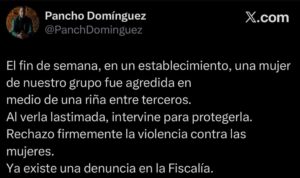 El video, que rápidamente se viralizó, generó distintas reacciones entre la ciudadanía. Sin embargo, Domínguez subrayó que su actuación buscó frenar la agresión y respaldar a la víctima, reiterando su condena a cualquier acto de violencia de género.